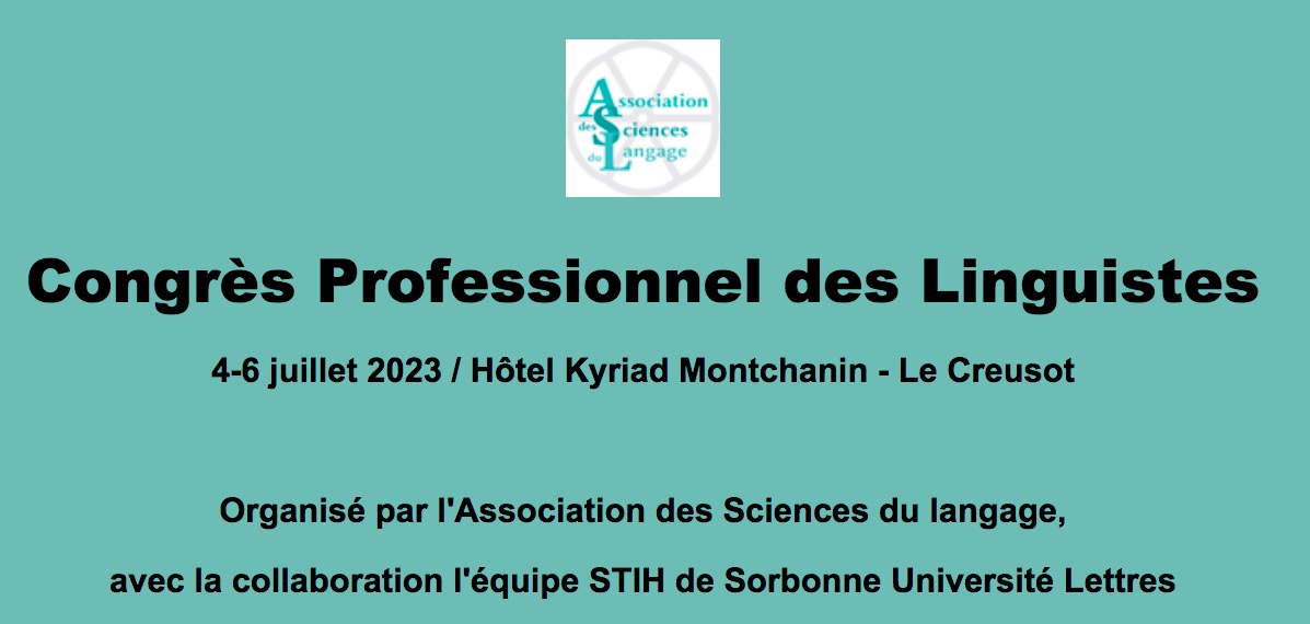 Lien vers le site du Congrès Professionnel des Linguistes - 4-6 juillet 2023